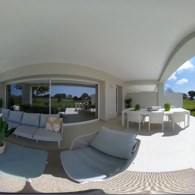 The plot occupies a privileged position above the famous “Old Course” golf course which literally surrounds it. It is an emerald green oasis, with views predominantly over the sea, the clubhouse and of the intense colour of the greens surrounded by ancient corn and holm oaks.