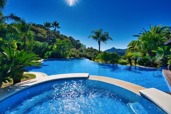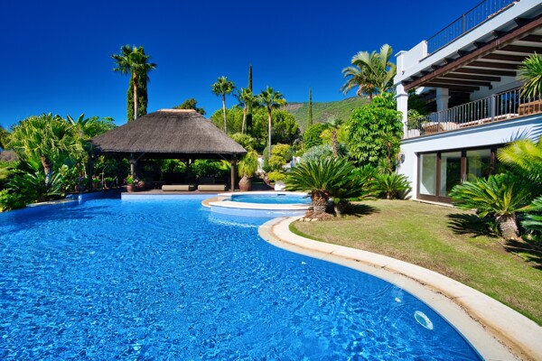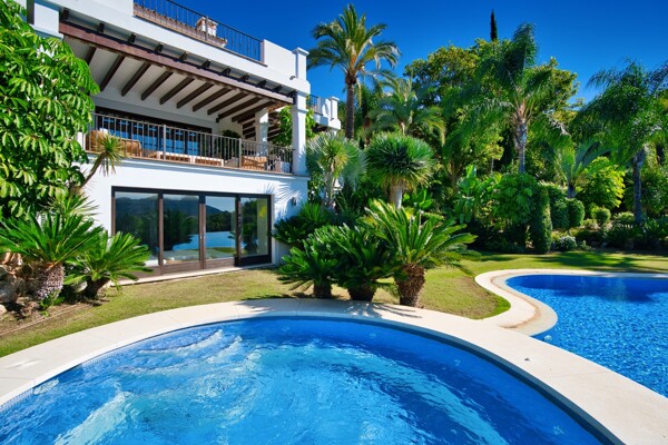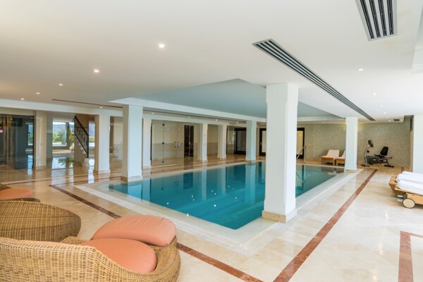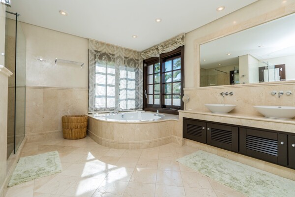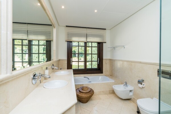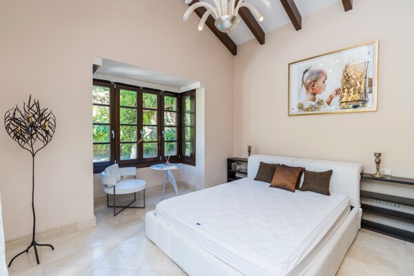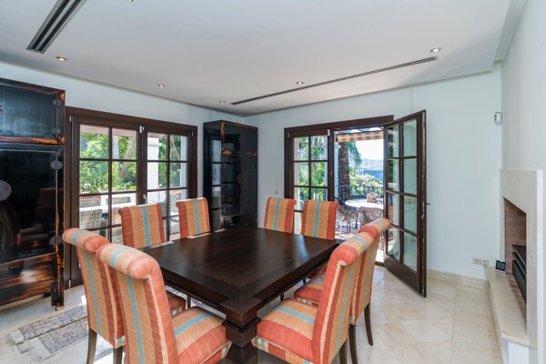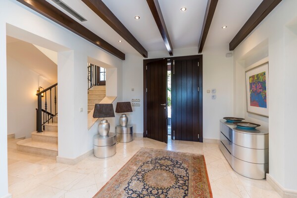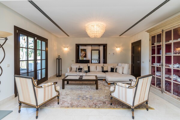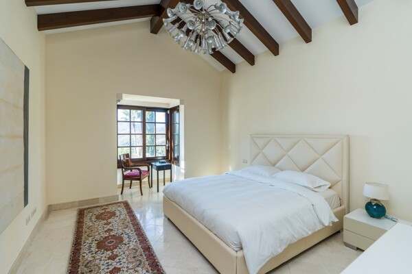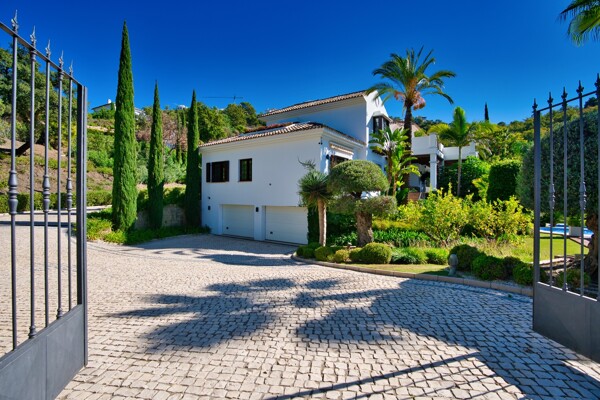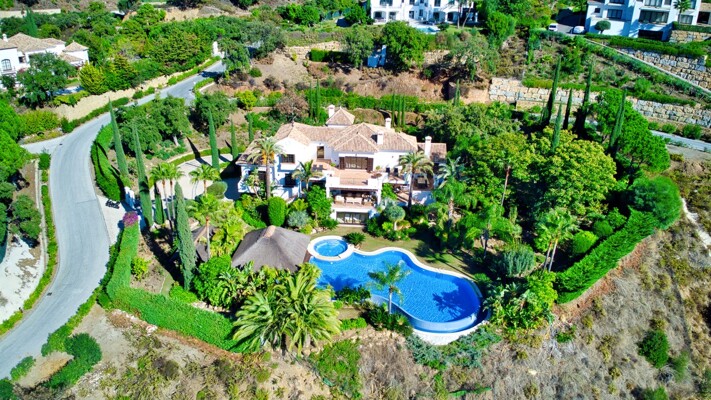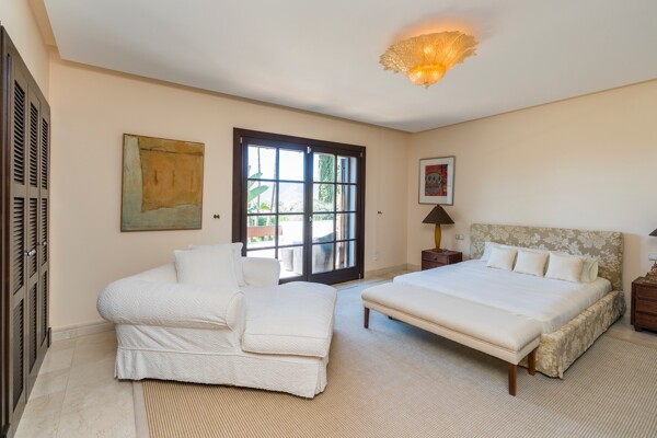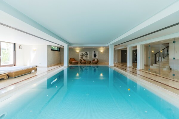 The villa also has indoor pool, sauna, wine cellar, gym, spectacular outdoor infinity pool, big garden Inside: Huge master bedroom in suite, all spacious bedrooms in suite, 5 bedrooms + office. Close to the north entrance of the most prestigious urbanization in Europe.